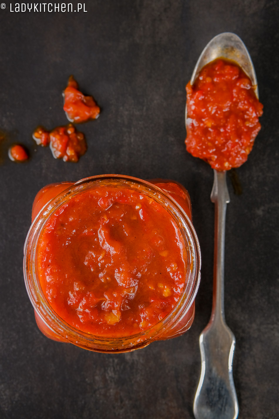 • 500 g ostrej czerwonej papryki (weźcie swoją ulubioną, ja używam chilli)