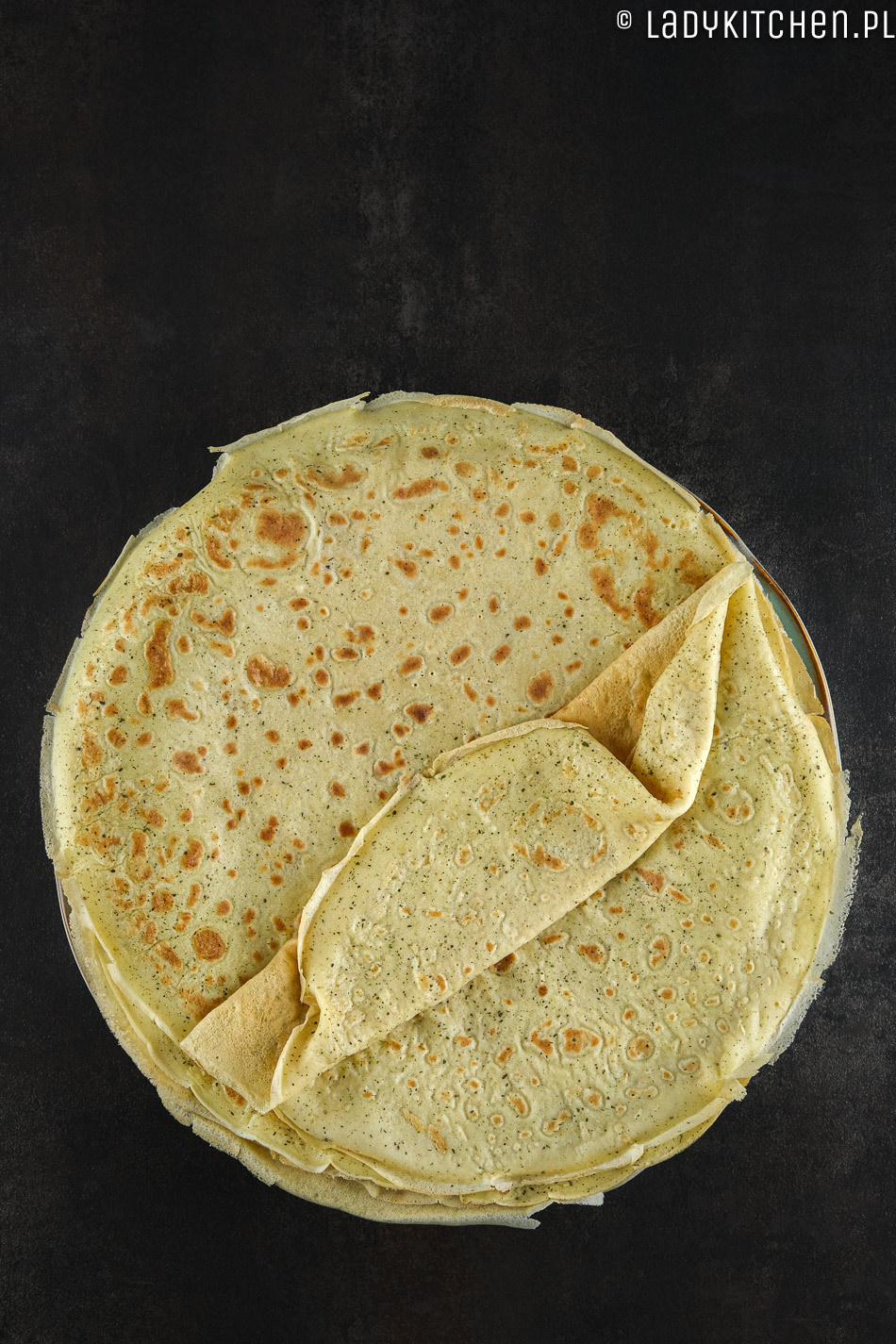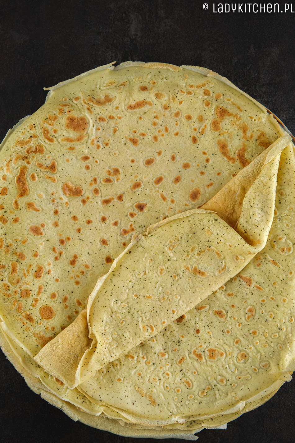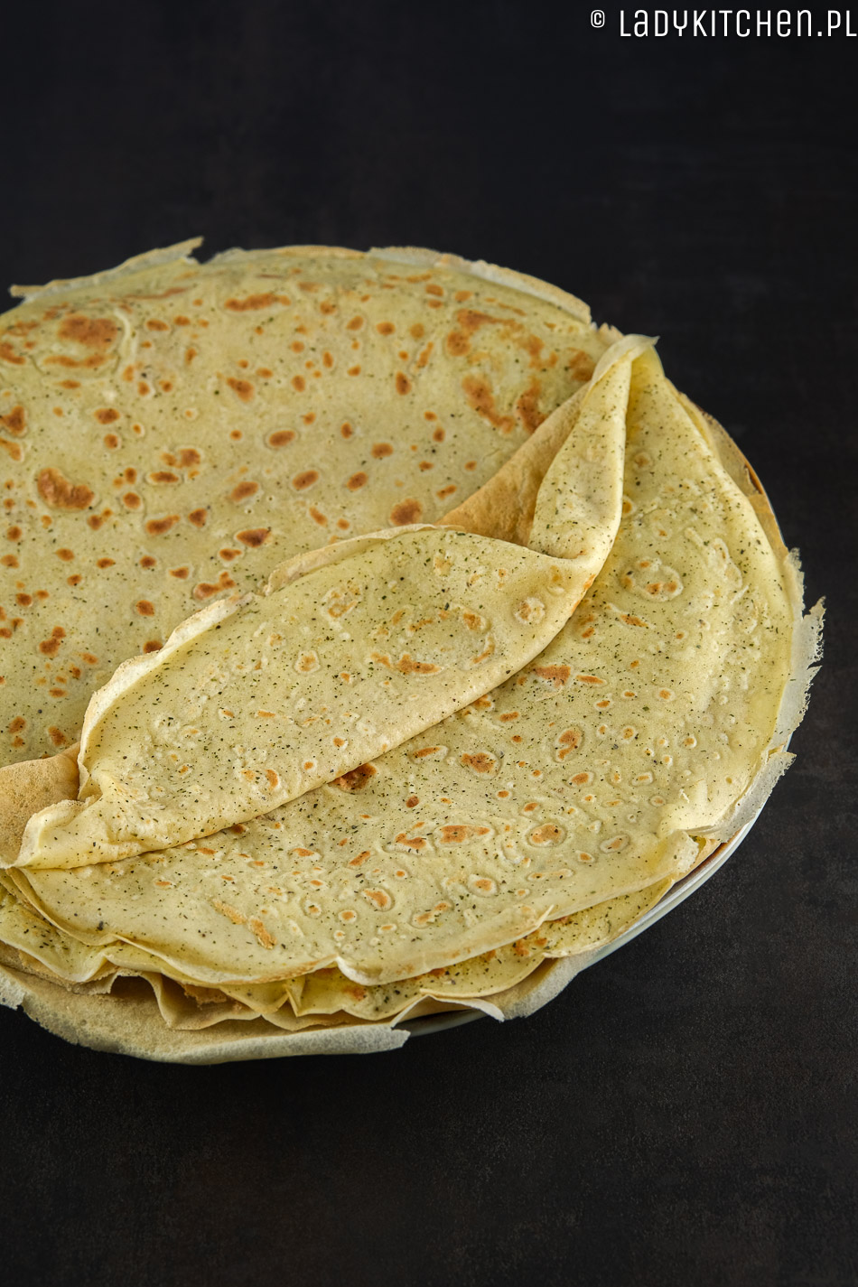 - Gotowe naleśniki przekładamy na duży talerz, odwrócony do góry dnem.
