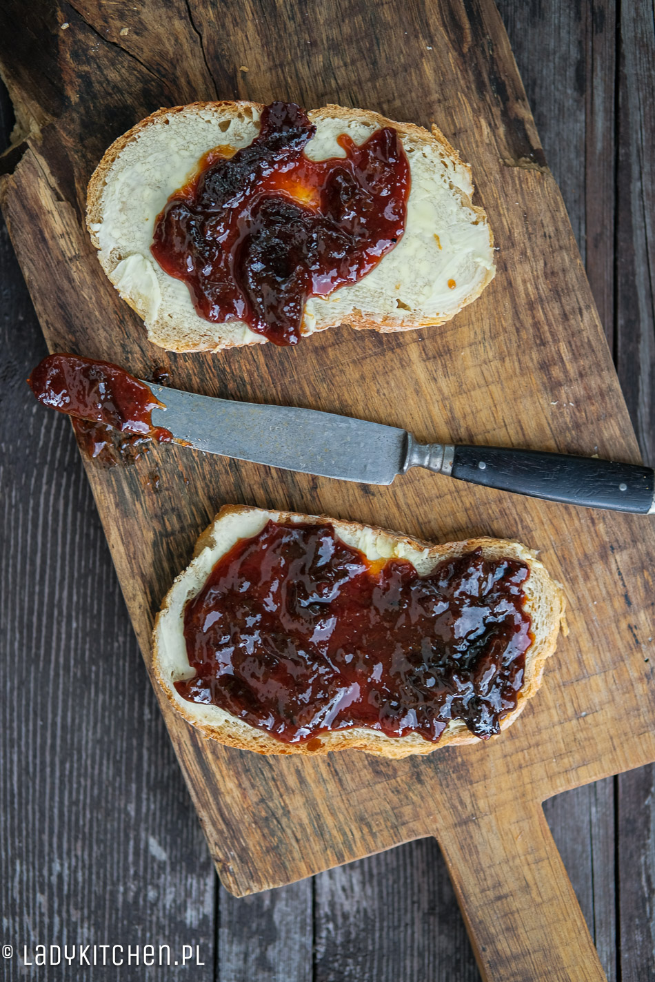 Jak już wiecie, weszłam w posiadanie notatek kulinarnych mamy, babci i prababci Najcierpliwszego. Czego tam nie ma! Trzy grube notesy, mnóstwo dodatkowych, pożółkłych karteczek i milion inspiracji. Z tych notesów wygrzebałam przepis na powidła śliwkowe pieczone. No ale jak to tak – bez mieszania i pilnowania? Biere, zapakuj! Jak wczytałam się w ten przepis, to trochę mi kokardy zwiędły, bo temperatury były opisane tak: „wsadzamy do pieca ciepłego jak na mięsa”. No cudnie… Pokombinowałam, wywaliłam przyprawy, których było bardzo dużo i oczekiwałam z drżeniem, co wyjdzie. Wyszły najlepsze powidła śliwkowe pieczone, tak dobre, że dorabiałam podwójną ilość, a to co zapakowałam w słoiki musiałam bronić własną piersią. Genialne!