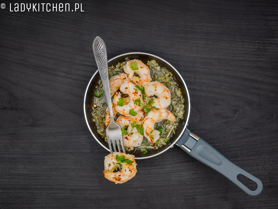 Jako zupełny indolent kulinarny potraktowałem przepis bardzo dosłownie i… krewetki spaliłem 😀