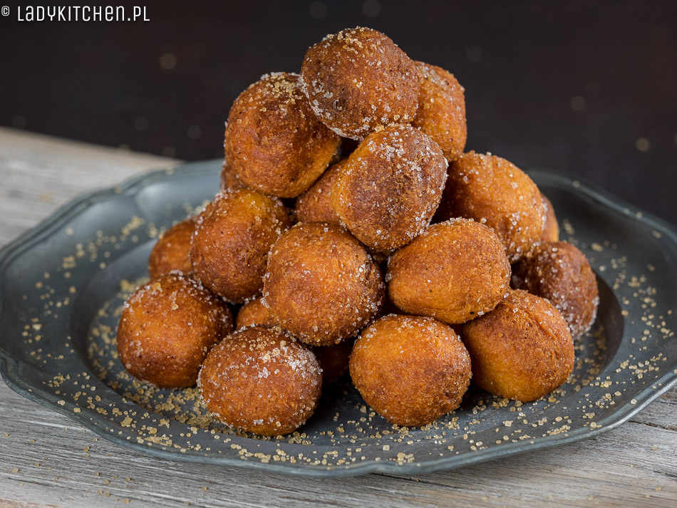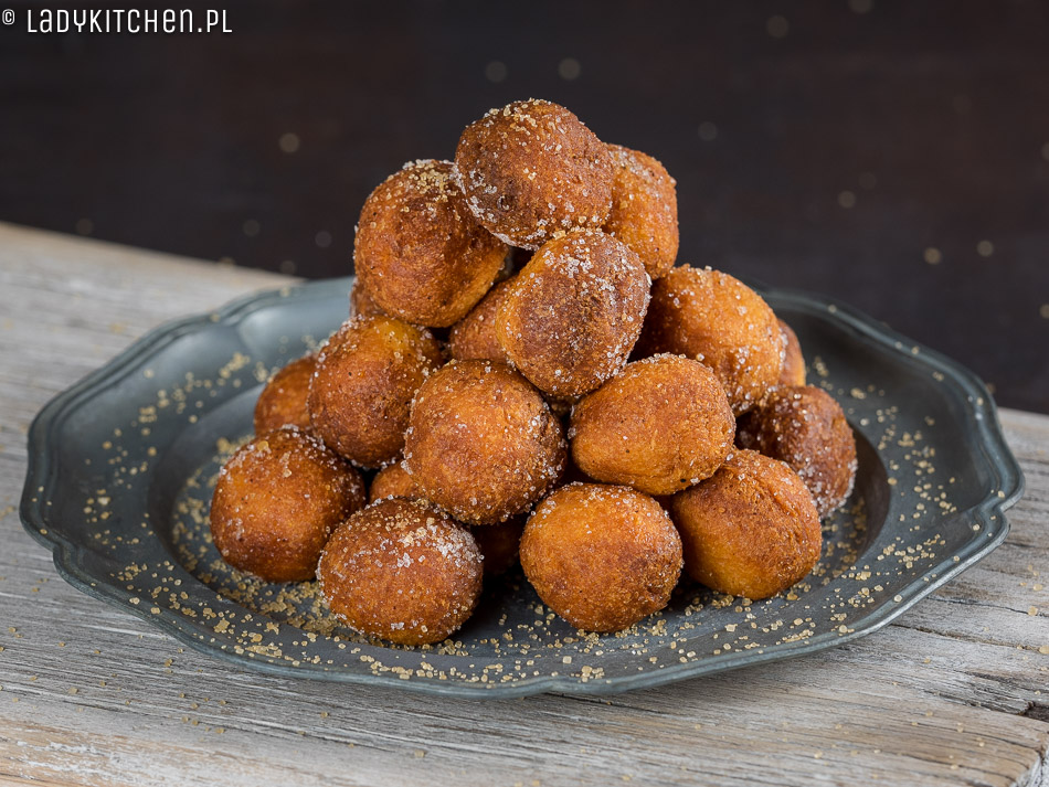 - Pączki posypujemy cukrem. Ja obtaczam je w brązowym cukrze. Możecie obtoczyć w cukrze zmieszanym z cynamonem. Jeśli posypujecie cukrem pudrem, to poczekajcie, aż ostygną. Na gorących pączkach cukier puder się rozpuści.